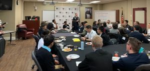 We conducted our first panel discussion about Making Decisions in a Technology-Driven World. The panelists were Dr. Leslie Fenwick, Rob Lively, and Denis McDonough. Dr. James Cornwell of the Department of Behavioral Sciences & Leadership moderated. A few insights included: